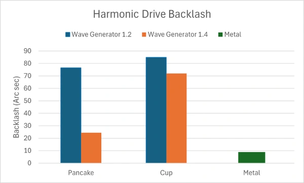 Results show that the larger wave generator allows backlash improvement, however, it is still far from the metal harmonic drive.