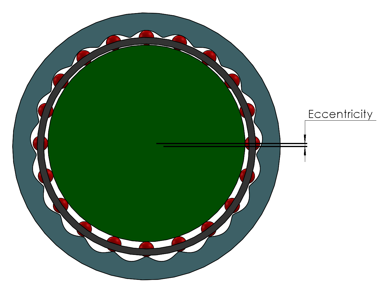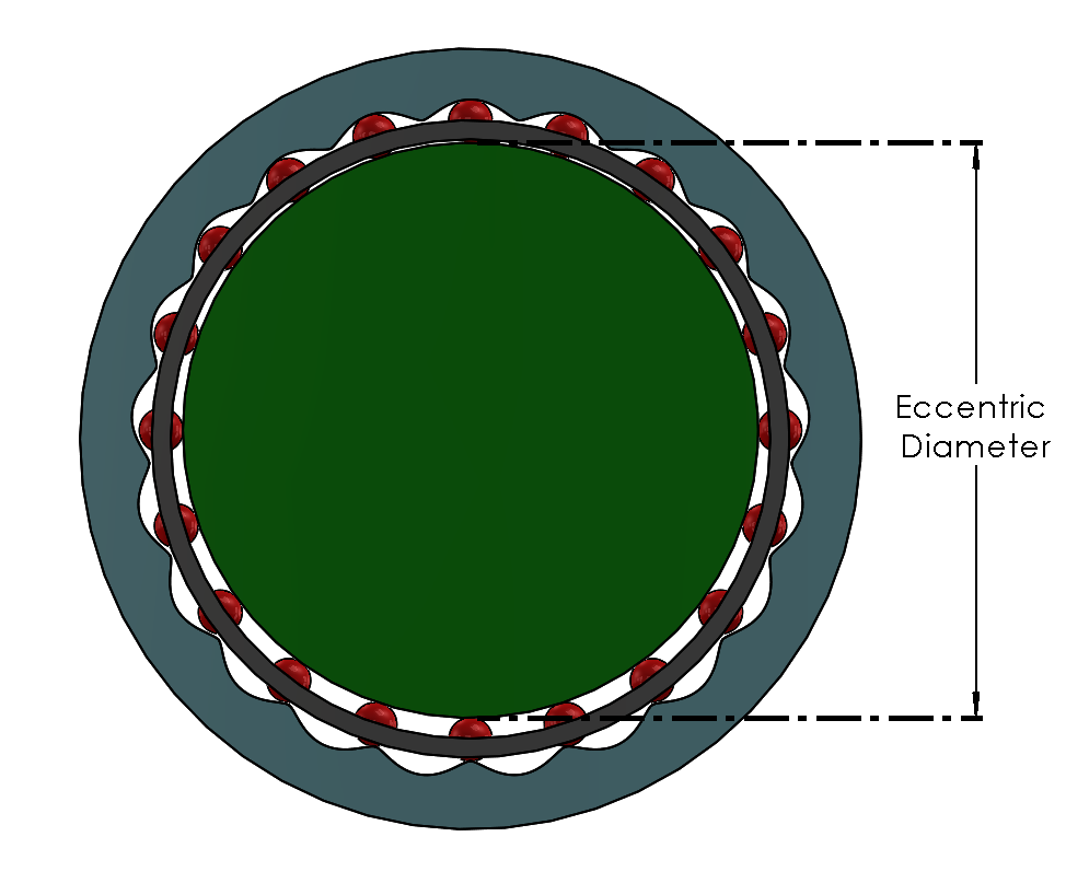 Wave reducers with rolling elements are a class of speed reducers that transmit motion through a wave-like profile interacting with intermediate rolling elements, such as balls or rollers. Instead of using gear teeth like planetary or cycloidal drives, they rely on pure rolling contact to achieve high reduction ratios, low backlash, and compact size. The eccentric cam pushes the rolling elements against a specially shaped rigid ring, causing smooth, high-ratio relative motion between input and output.